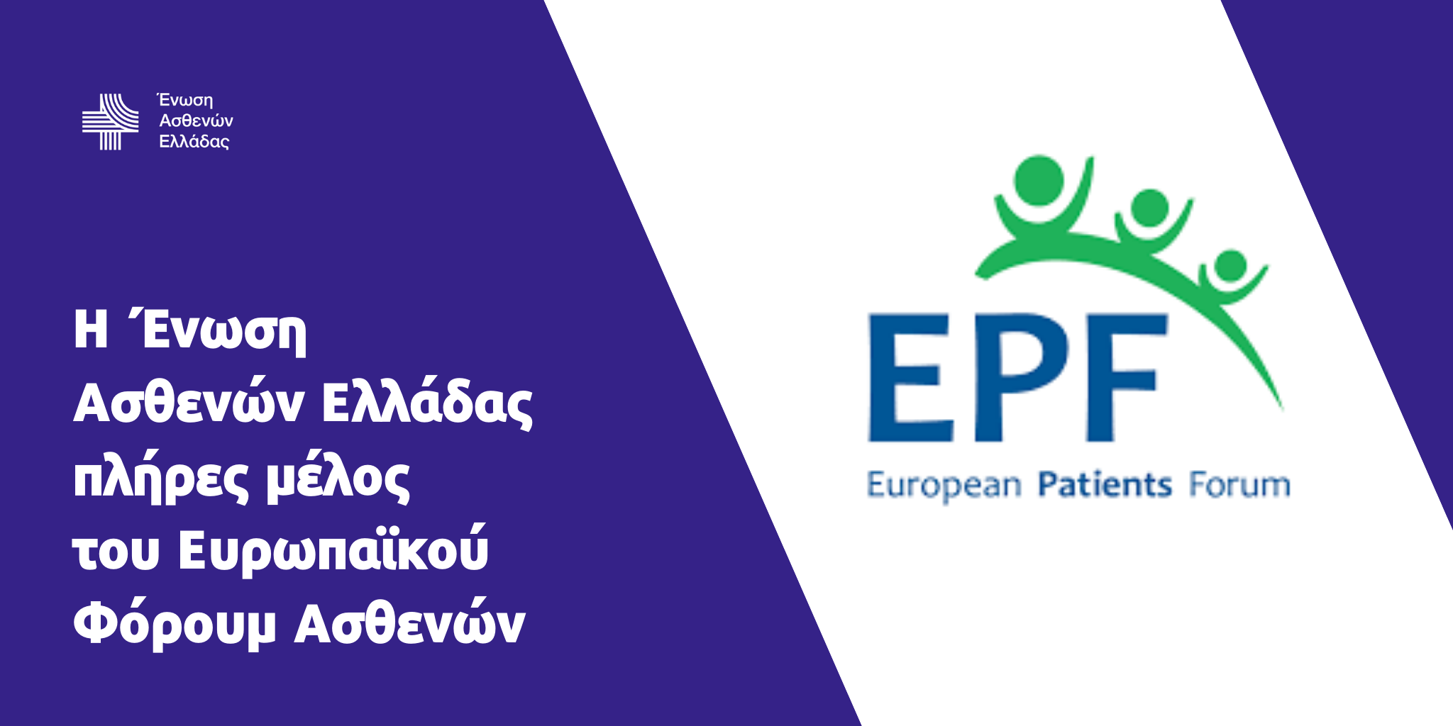 Η Ένωση Ασθενών Ελλάδας εκλέχθηκε πλήρες μέλος του Ευρωπαϊκού Φόρουμ Ασθενών (E.P.F.) στη Γενική Συνέλευση που πραγματοποιήθηκε το Σάββατο 25 Απριλίου 2020.